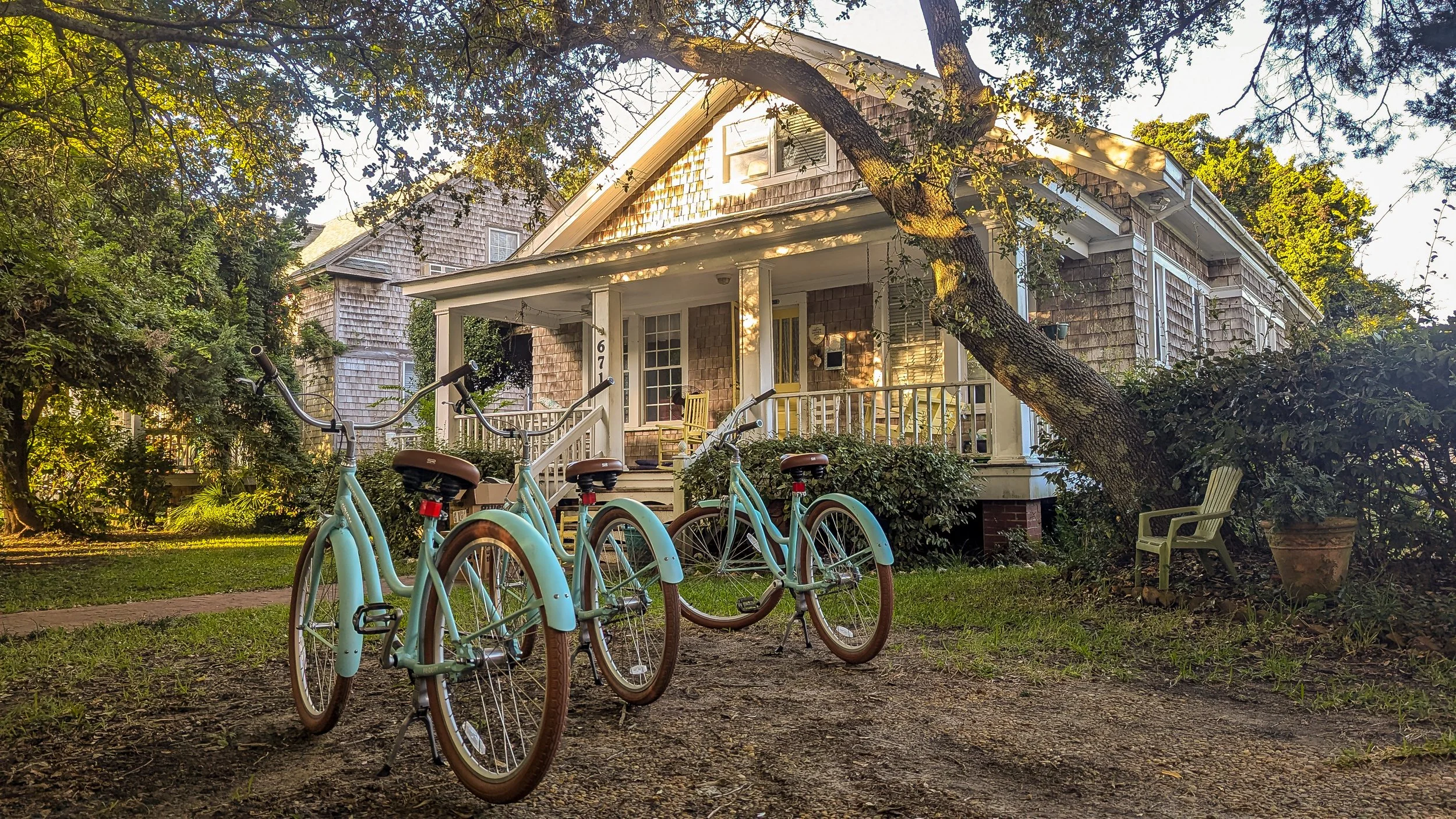 Built in 1925 beneath the live oaks, Thurston House welcomed fishermen, ferry hands, and wandering families long before Ocracoke had a season. Lanterns once lit the porch; stories unspooled in wicker chairs; salt and pine drifted in on a steady breeze. A century on, its timbers still hold the hush of early mornings and the soft cadence of island evenings.